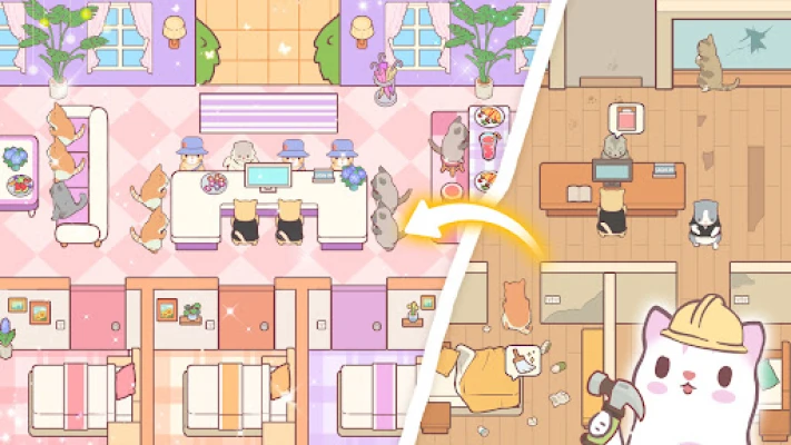 Live your dream of managing a charming cat hotel🏨 in this engaging idle hotel tycoon game. As the meticulous manager👔 of your perfect hotel, you design every nook to pamper your purring VIP guests🐾 in your perfect cats hotel resort, crafting the perfect hotel experience from the ground up to create lasting meow-mories! Relish in this perfect hotel idle game😻 and share your ideal perfect hotel life with friends!